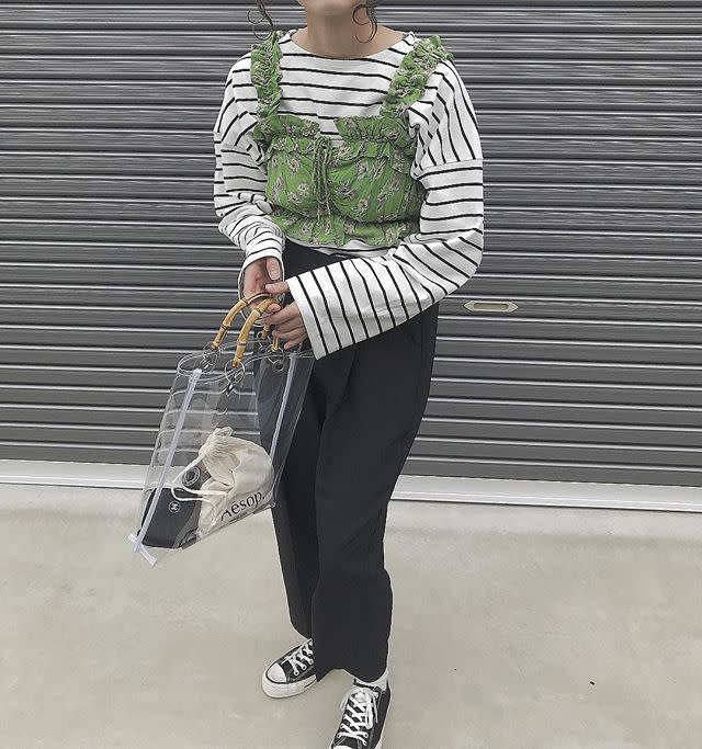 ち い160-165cm38歳2018.04.15. / view 816シェアコーデの解説を読む着用アイテム・ホワイト ボーダー プルオーバー#ホワイト#ボーダー#プルオーバー#LOWRYS FARM(ローリーズファーム)すべて見るアイテム情報をもっと見る・花柄 グリーン ビスチェ#花柄#グリーン#ビスチェ#Another Edition(アナザーエディション)すべて見るアイテム情報をもっと見る・ブラック パンツ#ブラック#パンツすべて見るアイテム情報をもっと見る・トートバッグ クリア バンブーハンドル#トートバッグ#クリア#FREAK'S STORE(フリークスストア)#バンブーハンドルすべて見るアイテム情報をもっと見る・ブラック スニーカー#ブラック#スニーカー#CONVERSE(コンバース)すべて見るアイテム情報をもっと見るカジュアル春大人女子ホワイト ボーダー プルオーバー花柄 グリーン ビスチェブラック パンツトートバッグ クリア バンブーハンドルブラック スニーカー元のブログ記事を読むシーンやアイテム名でコーデ検索♪女子会スポーツ観戦モテお呼ばれビジューミモレスウェットめがねち いさんのスナップすべて見る似ているスナップ友達にシェアする♪